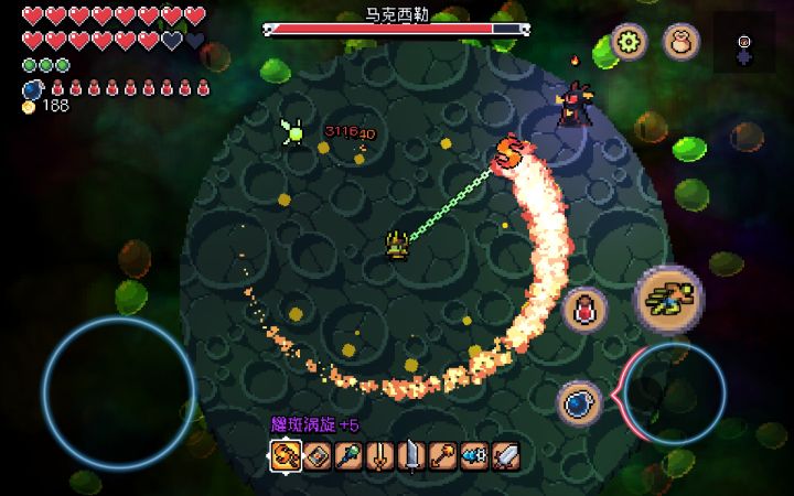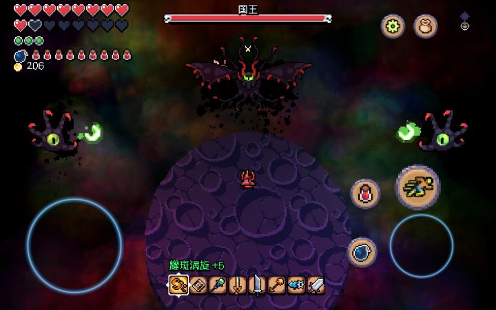 游戏中规中矩,不存在练级,纯属打钱造装备,装备够格了,就很容易推图。一开始用魔法书,升级魔法书,到了中期就可以换链球了,防御有多高堆多高,包括饰品也是用加防御的,防御还是王道,只要不死就有输出,链球记得买商店的链球加速(忘了打了第几个boss才有得买),然后开始无脑刷怪升级装备就好了。最后那个宝箱真的差点摔手机...最后boss,链球无脑推...然后没有二周目,最后剧情的图片也没看懂...大概是还