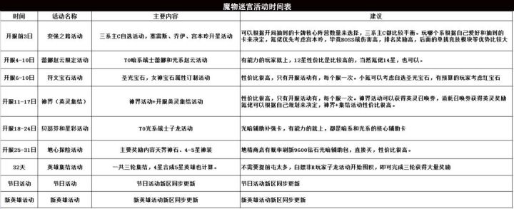 关于开服后的一些活动排期表,请各位领主、主公、将军、冒险者大大们康康;及时掌握游戏资讯,不迷路#