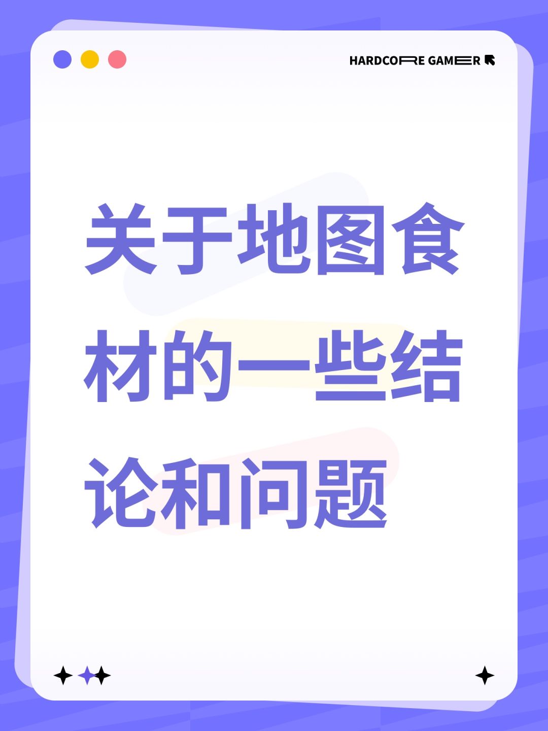 先说大概率是正确的结论: 1.地图食材每日捡上限分别为紫5,蓝10,白20,矿3 2.每个食材都有概率升华,升华概率大改为10%(根据我的食材算的),不知道有没有人测过。 3.紫色食材每个地图同时只能存在一个,不捡掉就不会刷新,包括每日8点更新等都不会刷新。 4.食材补充最小间隔为30min,每个地图独立,不同线路算不同地图(存疑) 5.维护后应该是新地图,会全重置。 --------------