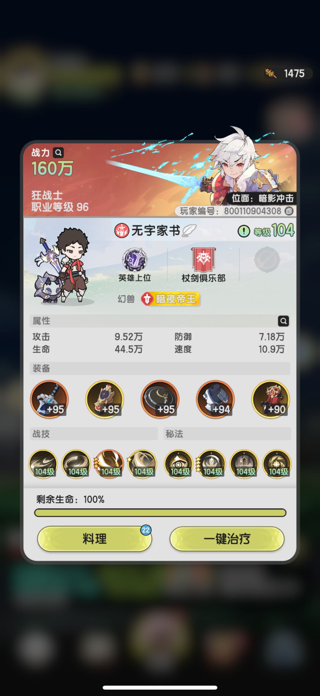 零氪无实体化272w战力109级#杖剑传说攻略 #,吃了一个+10%防御料理拖延了一回合免死触发。属性差不多的可以试试。