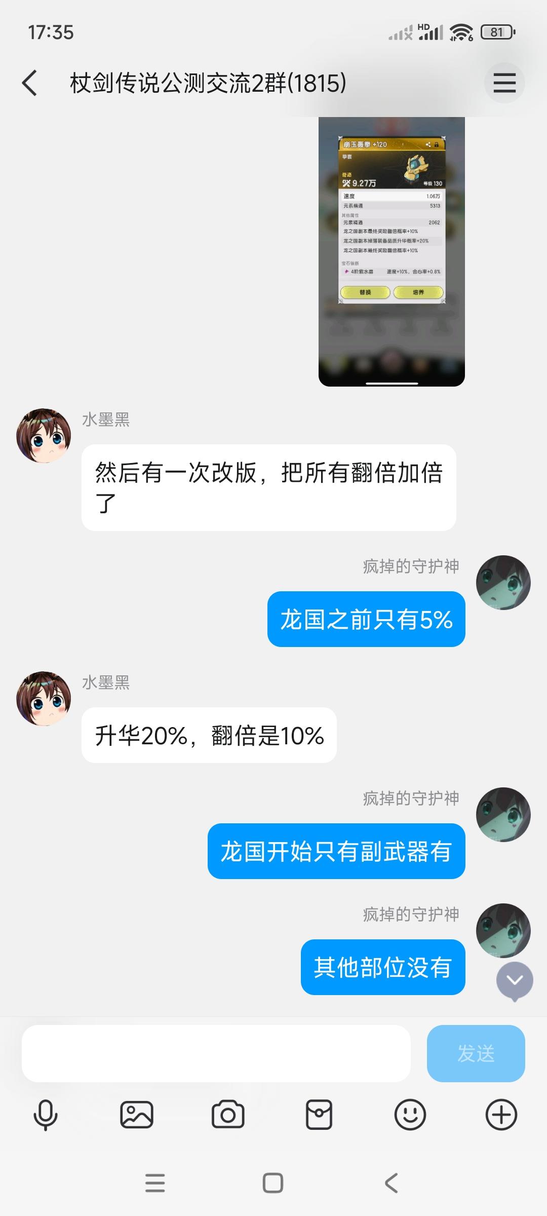 两个人理直气壮的骂我 说的话又乱七八糟 说b站有视频 有人看过吗最后还有人说 有五件!!! 三词条5%的翻倍装备这是策划给他的装备吗? 测试区是随便调整装备的吗?