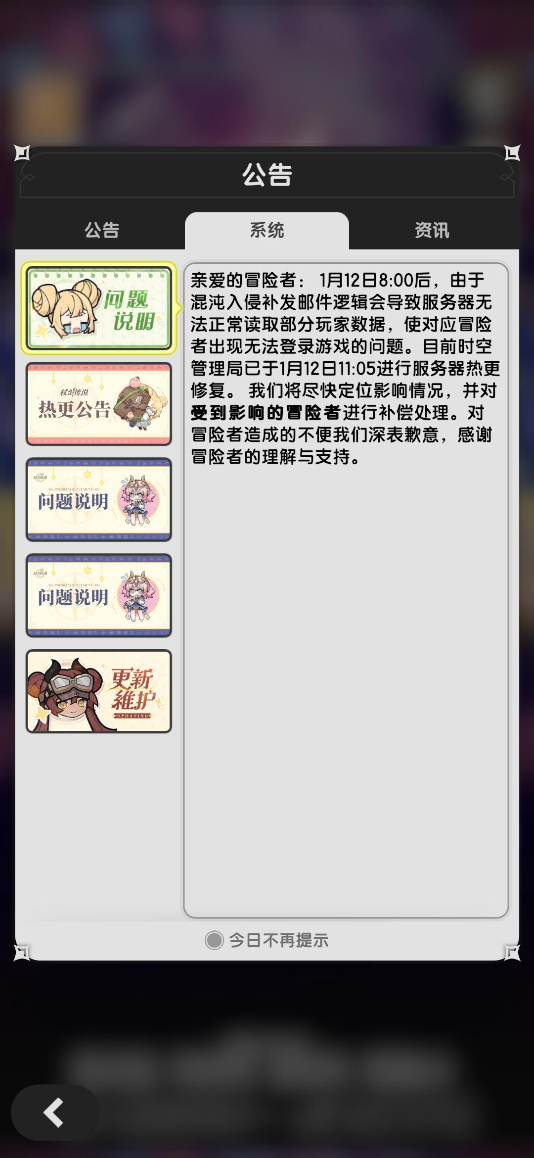 目前存在可以登录的账户 登录的账户查找不到对应数据注册的新账户可以登陆充值获取不到账户信息 更新服务器导致数据丢失(错误格式化) 部分玩家账户数据在此服务器数据全部丢失1.存在更新前网络备份 目前可能正在上传2.没有网络存档 完蛋 3.服务物理损坏,正在维修或替换4.运营正在和主管拼刀 无暇顾及游戏运营5.策划大削术士 100转术士踏破维度 两个粑粑怪把雷霆机房炸了#杖剑传说