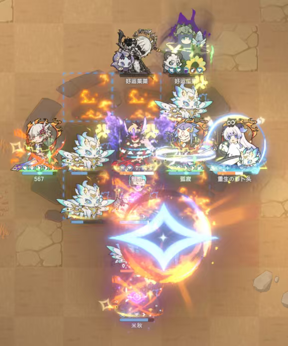 开局原理说明:压小怪血线,负面状态叠加增伤,走位聚怪,爆破真伤秒杀boss。 技能搭配:主动唯一固定:绝影,其它三个技能都可以自由搭配,到了怪物碾压速度的时候还得上风步。被动:灵魂溅射,破蚀之力,强袭,浴血。最重要是通过调整站位让小怪和boss在绝影启动的回合尽量聚集,血线尽量低,让爆破链式反应。纯凹的套路,应该适用于全氪度。如果有溢伤爆破词条的装备可以留一下,有几率增加爆破的伤害上限。