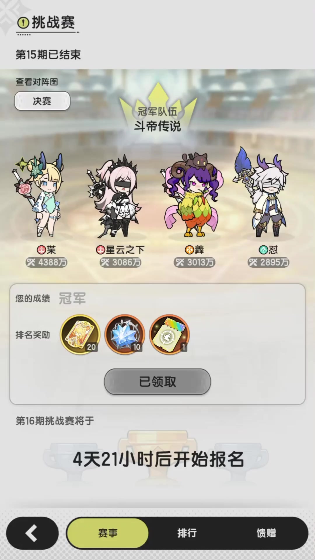 挑战赛斗士越3000万轻松1V4拿下冠军,技能搭配分享(第15周)