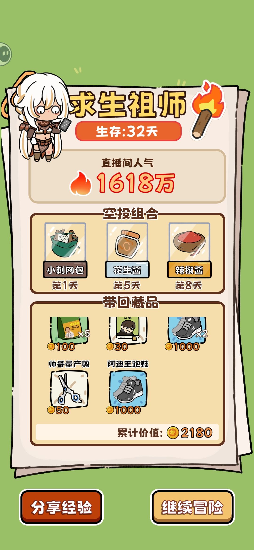 本局空投是巧克力+神秘的蛋(压缩饼干*5)+辣酱,没看过广告,第九天一豹十五天二熊,冰块无熊豹,爱斯基摩人交易三次,作物种了五次,狐狸后期被喂成胖狐狸后宰了当储备粮了。 个人经验如下: 武器开局:弩+射鱼器+铲子。 非常不建议弓开局,弓打熊有概率被反杀! 关于开局空投:一开始我是想刷天降陨石开局的,但玩了几局发现陨石概率很迷,即使是走陨石流一局下来也猎不到几头熊豹,而且很难熬后期,偶然间一次没刷陨