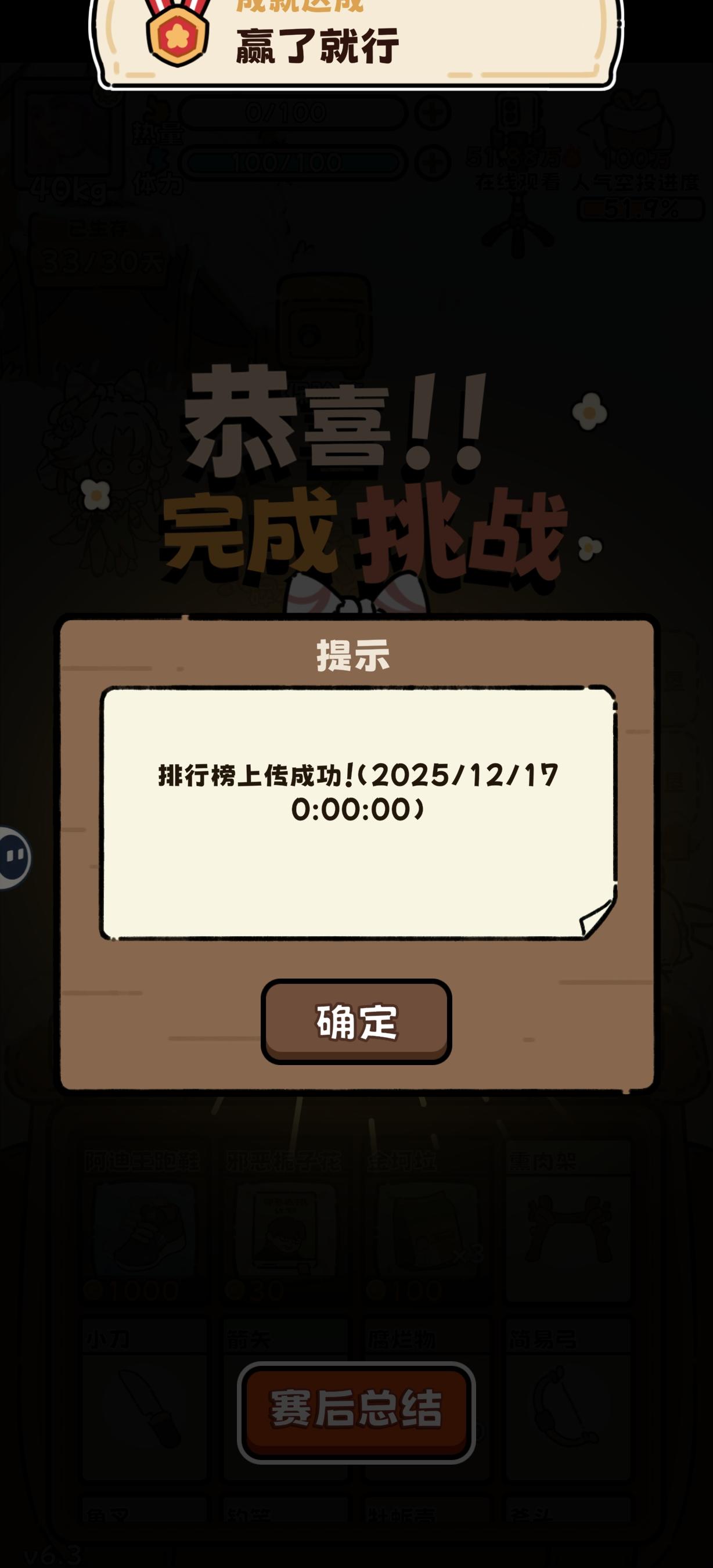 欧气满满(但忘记屯木头,遗憾退场