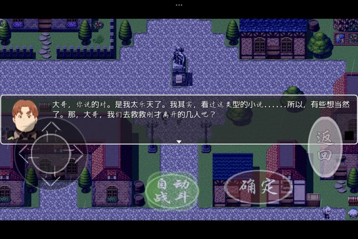 1.第一章进去带着主角队去右上方的小房子,有一堆猪头怪,左右两边有女神像,各点一下开机关,送初始勇者,然后去中间上方找主神买全一套50点的垃圾装备,然后跟着勇者打过主线【那个鸡不建议打,真打得话用戒指技能】2.二三章直接用作者送的礼包装备打过就完事了,自己家可以做材料,记得吃,属性给的很多,中级料理+88攻击,高级料理+88防御,吃满提升很大,建议拉给主角,方便后面打装备滚雪球3.第二章村民在