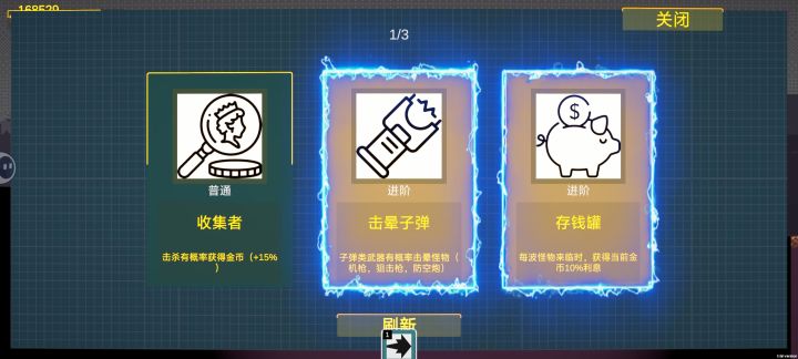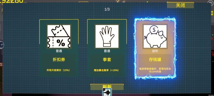 无挖矿模式中尽快叠存钱罐层数,十层了每波结束金币翻倍。