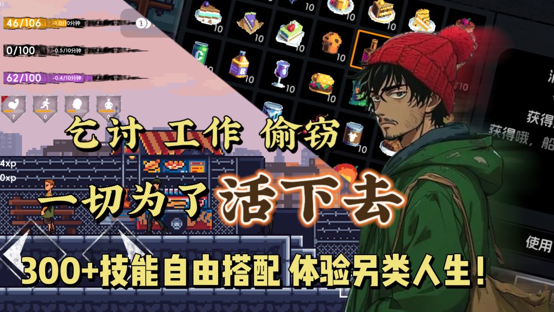 肉鸽玩法的『流浪汉生存模拟器』,乞讨,捡垃圾,打黑工……