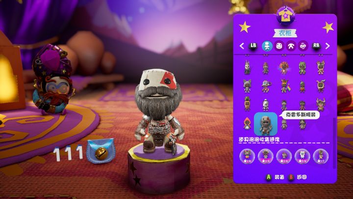 之前提到游戏中一种特殊的货币——金球,这个货币资源是用来在商店里购买皮肤和表情动作的。收集各种不同的皮肤,也是这款游戏的一大玩点。本作有很多与其他游戏进行联动的皮肤,像《糖豆人》《死亡搁浅》,乃至索尼自家的《战神》都有联动,看起来非常亲切。联动皮肤不仅让主角麻布仔有了更加炫酷的造型,也给游戏带来欢乐的气氛,如果是多人游戏的话,大家都用着不一样的皮肤,就更显得有趣了。