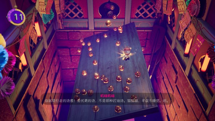 当然了,占游戏绝大部分的3D平台跳跃玩法作为本作的内容基本盘,做得很扎实。每个关卡中都会有一个主线任务,那就是到达终点,玩家只要不是太手残,一般都能达成,但是分数的高低以及奖励道具收集的进度,就会因为操作技术的差距而有一个很大的区分度。