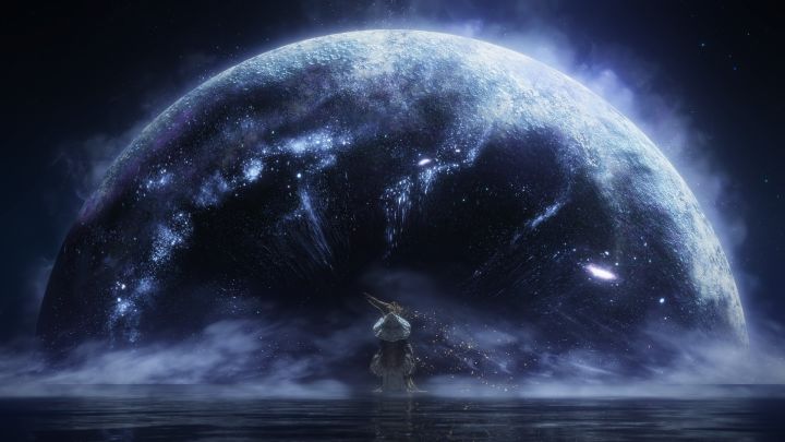 我很讨厌这个游戏,我讨厌死亡惩罚,我讨厌一遍又一遍摔死,我讨厌被墙后边的小怪偷袭吓一跳,我讨厌365里路和各种恶心掉san的怪物。那又是什么让我坚持玩下去呢,或许一年前迷茫的我也同样不能回答这个问题,引导已然破碎,而单靠自己探索这块广袤却又处处惊险的交界地实在挫败感太强了,在搁置一年后,我重拾信心,靠着一些攻略勉强度过了最劝退的开局。慢慢的,我一路走来。史东薇尔精妙的地图设计第一次让我惊叹,利耶尼亚湖区的朦胧湖光、学院法术的魔幻、暗月戒指泛出的涟涟月色,共同交织成我在交界地的第一场梦:我要带着菈妮的暗月大剑踏遍交界地,成为她的王。慢慢的,我见证许多。击碎陨落的繁星,奔向亚坛高原、力战一年前的梦魇--大树守卫,王城的恢宏再度让我震撼;去火山对峙大蛇,在鲜血王朝沐血,遥望地底的虚幻星空,漫步在黄金树与暗月间的雪山窄崖,我记录了路遇的一切美好,也经历了数不清的悲剧。成王路上,我在不断失去,一次又一次,有人心堕癫狂却誓不背叛、有人宁愿身躯腐化也选择战至终章,有人焚尽自我只为让我前行…我曾不止一次怀疑过,成为艾尔登之王后我得到的到底值不值得这一路悲歌?癫火又会不会是更好的选择?到底什么样的结局才配得上如此沉重的故事?直到我脑海中再度回响起某人的话语:"Life endures,Births continue."于是最终,我在群星间许下誓言,待冰冷温柔的月夜包容一切…或许在不知不觉中我已然成为了褪色者,踱步于这个充满色彩与黑暗的混乱时代。