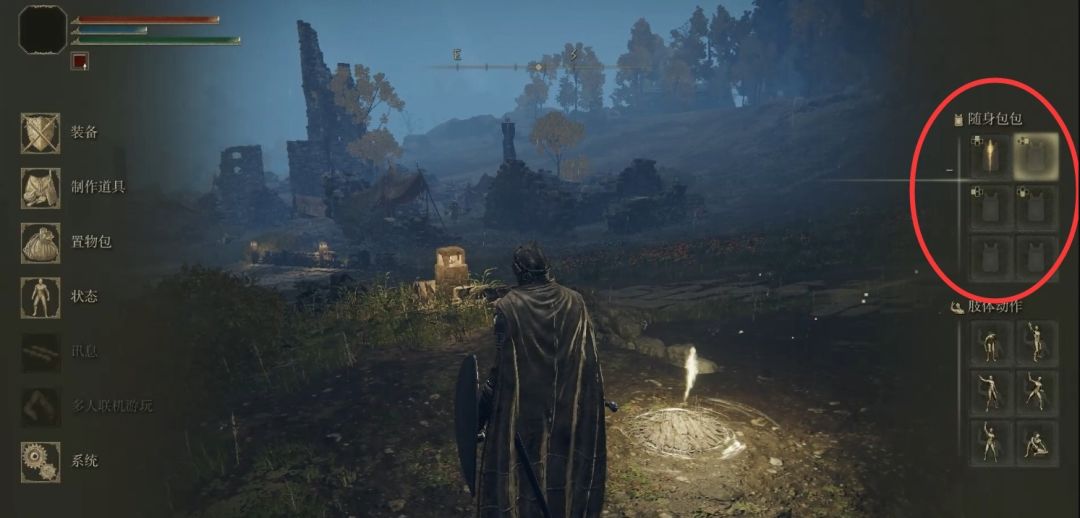 商人、制作道具 与艾雷教堂的商人对话,他推荐你买工具皮袋。 拥有工具皮袋即可解锁“制作道具”菜单,能用材料制作各种道具。 取得“制作笔记”之后,能制作的道具种类也会随之增加。 #游戏安利 #游戏攻略 #艾尔登法环