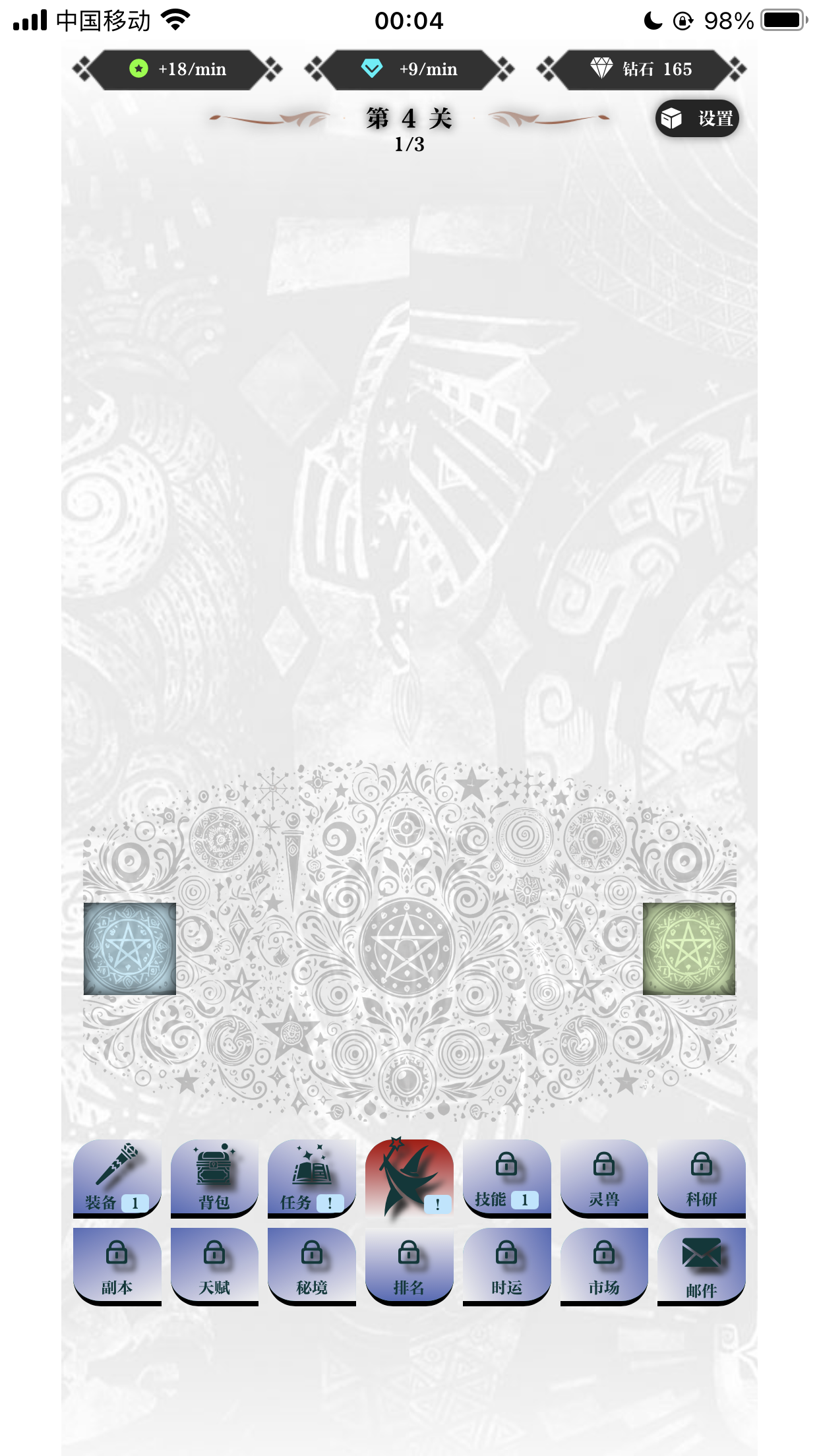 本攻略仅游玩俩天写出,旨在对于萌新减少弯路以及对于后续发展的建设简单总结,升级,别的不管进入游戏此乃游戏主界面,上方显示金币,经验以及钻石中间则是显示你以及怪物。至于下方则是各类功能。一、装备装备功能应该是开局就开启。在其中可以对装备进行强化,镶嵌宝石,以及更换装备个人建议装备只强化攻击和生命以及生命回复。以下是各类装备所附加的主属性推荐多镶嵌红宝石以及黄宝石和紫宝石,氪佬们可以