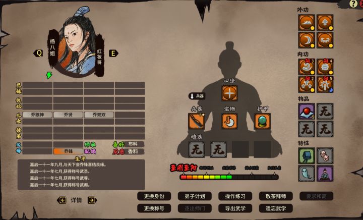 江湖录过来人攻略 天赋绝世之才和巨服提升血和伤害的是最好的。宗师和英雄天赋没什么用。(绝世之才是巨副增加暴击暴伤)江湖录攻略, 开局五人,掌门选绝世天赋 之后两个紫色弱伤,一个紫色加伤害的。之后4弟子,一个是一脉相承 大厅主管的夫人,一个是英雄之资加铁匠天赋的保镖。之后是招募大厅和闭关天赋的管家,之后是藏书阁和练武天赋的秘书。(炼丹其实不重要,前中期很少需要吃药)。每人后两个都是老谋深算 老