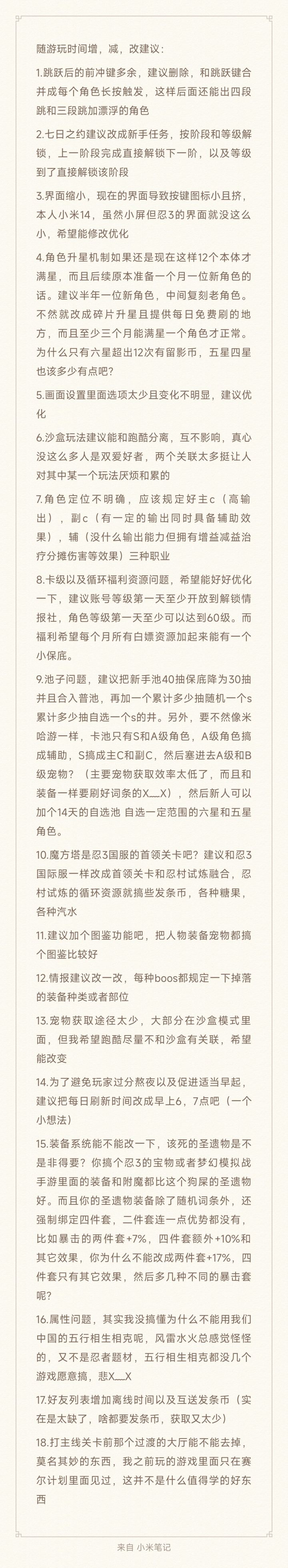 一个隔壁5年中氪给官方的建议