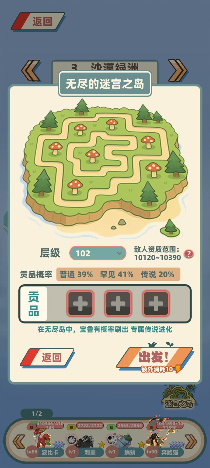 游戏推图过了2-5后,就可以进无尽了,这才是游戏的开始,变异宠物的主要来源地。就是进一次无尽,体力要的多,建议可以减少进无尽的体力需求。