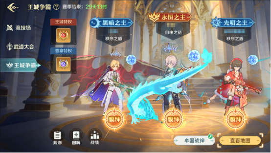 各位旅人大家好呀~本次更新将开启三大重磅内容:全新个人PVP活动「王城争霸」点燃战意、新职业破界登场、90级等级上限正式解锁!更多玩法细节将于本周更新全面揭晓,敬请期待。PS:具体更新请留意后续游戏公告王城争霸介绍开启条件:服务器开启第21天,原公会秘境和勇者试炼将会替换成王城争霸,本活动为个人活动。【赛季规则】1、每4场活动为1个赛季,赛季开始时,除基地外其他城堡均为中立状态。2、后