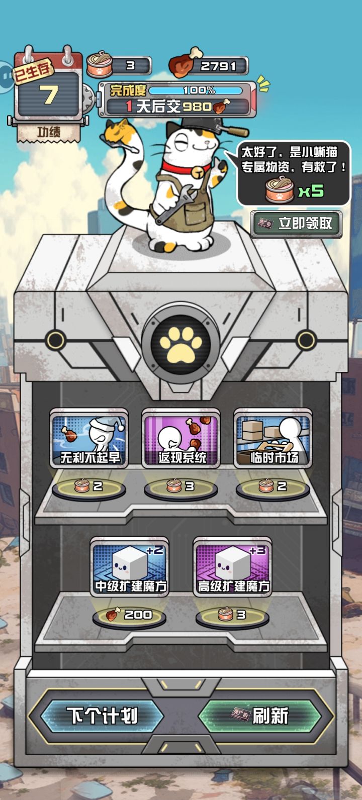 局内养成是每到下一天的rouge选择,玩家这个时候需要从三个房客中选择一个,然后合理安排房客住宿的位置,游戏给玩家提供了初始的3×3房间,两个一星可以合成一个二星,以此类推,同样房客可以合成升星,提供更加强力的效果,玩家可以在每天后消耗罐头等资源购买道具,增加属性或者扩建房间,每个房客都会提供不同的资源,核心资源是【鸡腿】,玩家需要在指定天数提供要求数量的鸡腿,未完成数量则游戏失败,鸡腿数量随着游戏进行天数增加而增加。