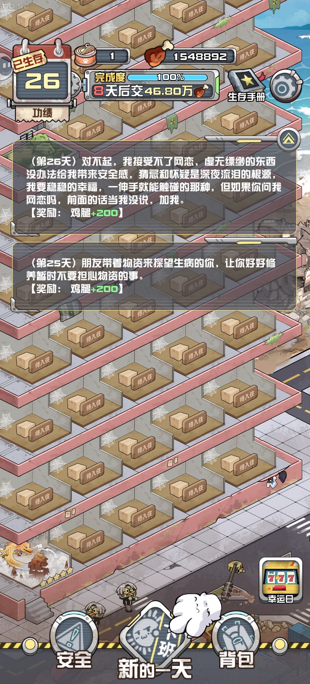 我在末日当房东是一款末世题材的模拟经营手游,玩家将会进入一个末世世界中,各位能以房东的身份来开启自己致富故事。下面是九游小编给大家带来的我在末日当房东新手入门必看攻略,感兴趣的小伙伴们一起来看看吧。 我在末日当房东新手入门必看攻略 第一张图算是效果图,基本不会缺鸡腿,而且非常溢出 第二张图就是我们钓鱼流的核心了,如果拿不到这个玩意,那不好意思,你玩不起来 第三张图是第二张图的获取方式,相信大家都拿