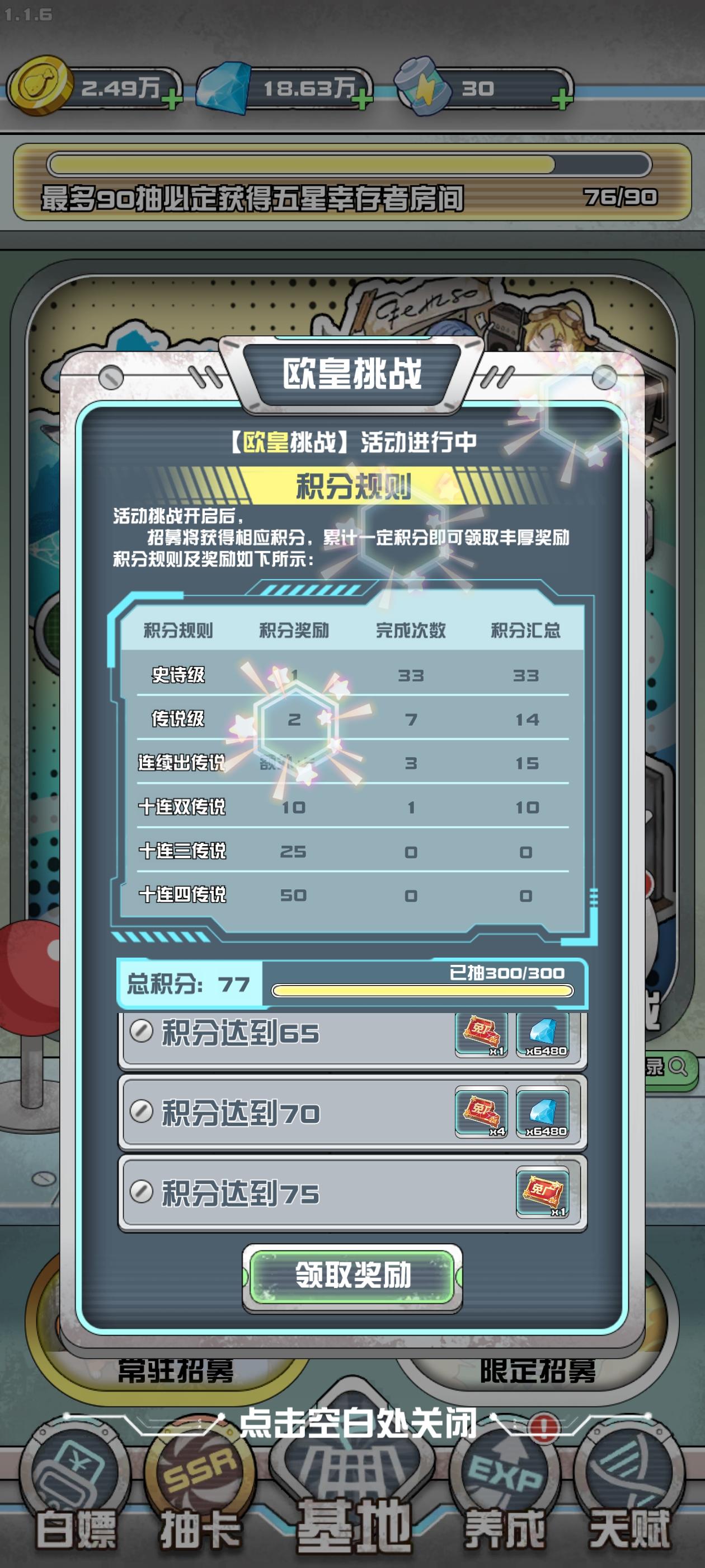 这个玩法的前提是拥有免广告卡,游戏里需要一直刷需要的角色,异能,事件(必须吐槽一下,现在更新之后,广告基本上都不能跳过了,很恶心新人,还好我不是新人)该玩法思路是合成五星祖龙,提前获胜获得祖龙目前只有三个方法:1,异能“龙之觉醒”,龙蛋变成一星祖龙,仅限一次2,种田流,灵兽变祖龙(太慢了)3,修仙炼器流,破奇遇刷祖龙(也慢)要速通就要选第一种方式。核心角色:“物种混合师”