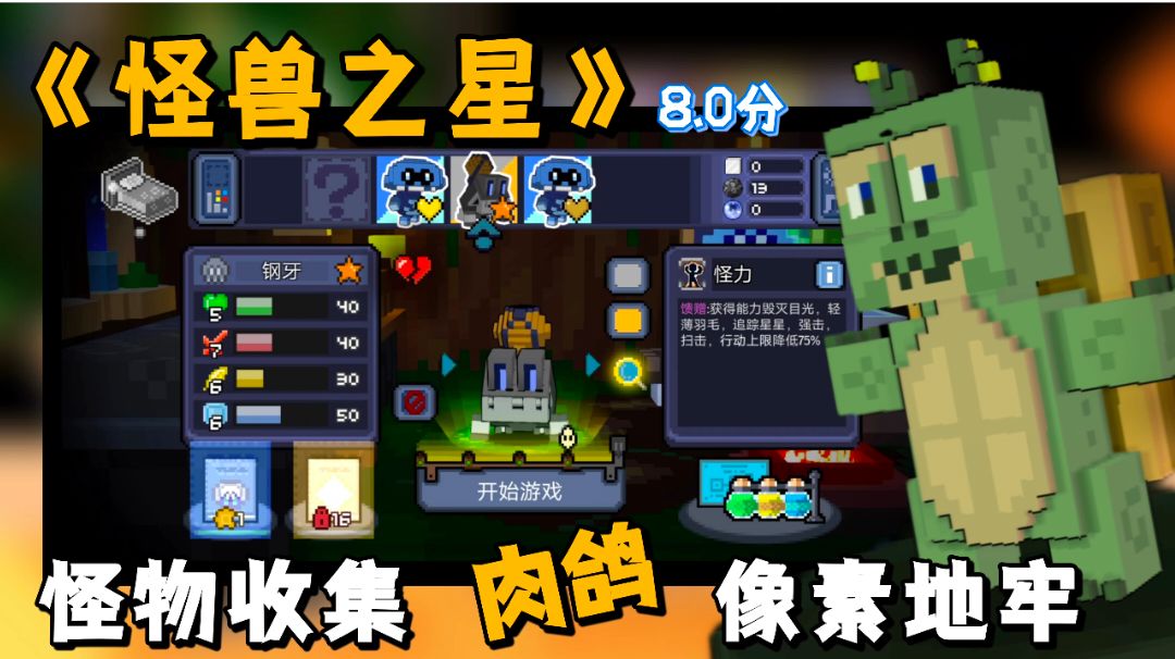 怪兽之星是一款像素风、地牢式肉鸡玩法、以怪兽为主题的单机免费手游,算是肉鸡界的一股清流,玩法类似怪兽大乱斗,最关键的一点是支持原生手柄,游戏作者为个人独立开发者,IOS和安卓双端均有上架,评分都较高。我在这里简单介绍一下游戏特色: