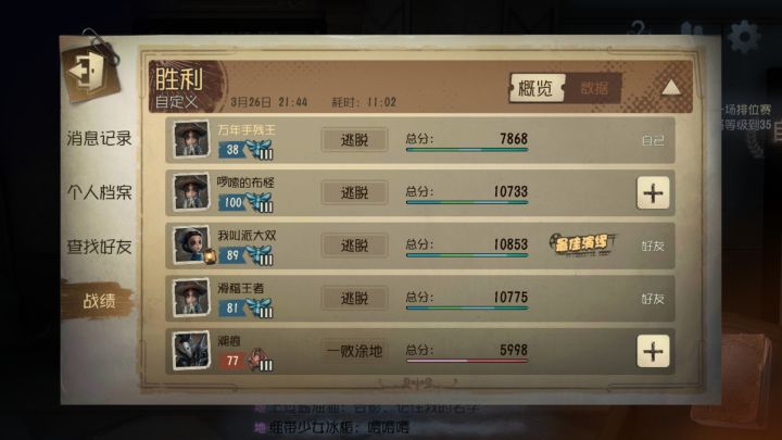 内测就开始玩了,那时候还没有和谐,昵称不记得最后改成啥了。只记得一开始叫如履薄冰,后面应该是叫血红的蝶#第5人格