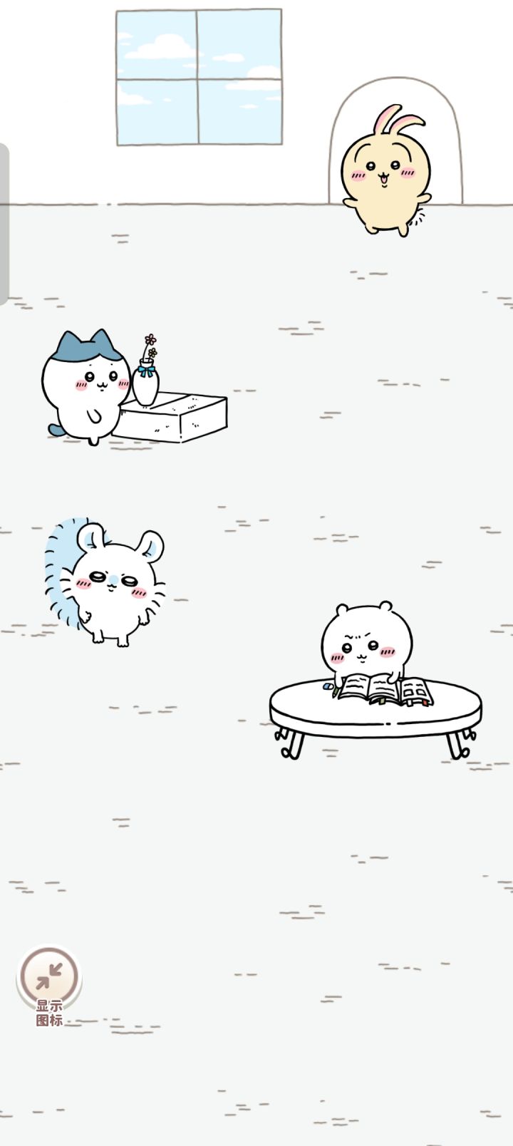 🌺1. 画面:首先说说画面,画面融入了吉伊卡哇的元素很可爱,每一个角标或者符号都是带有吉伊卡哇的风格,点击特效也是几个小可爱的边框。在解锁特定家具或者特定成就的时候还可以看到画师原画,这点真的很棒了,小可爱们在原画里也超级可爱