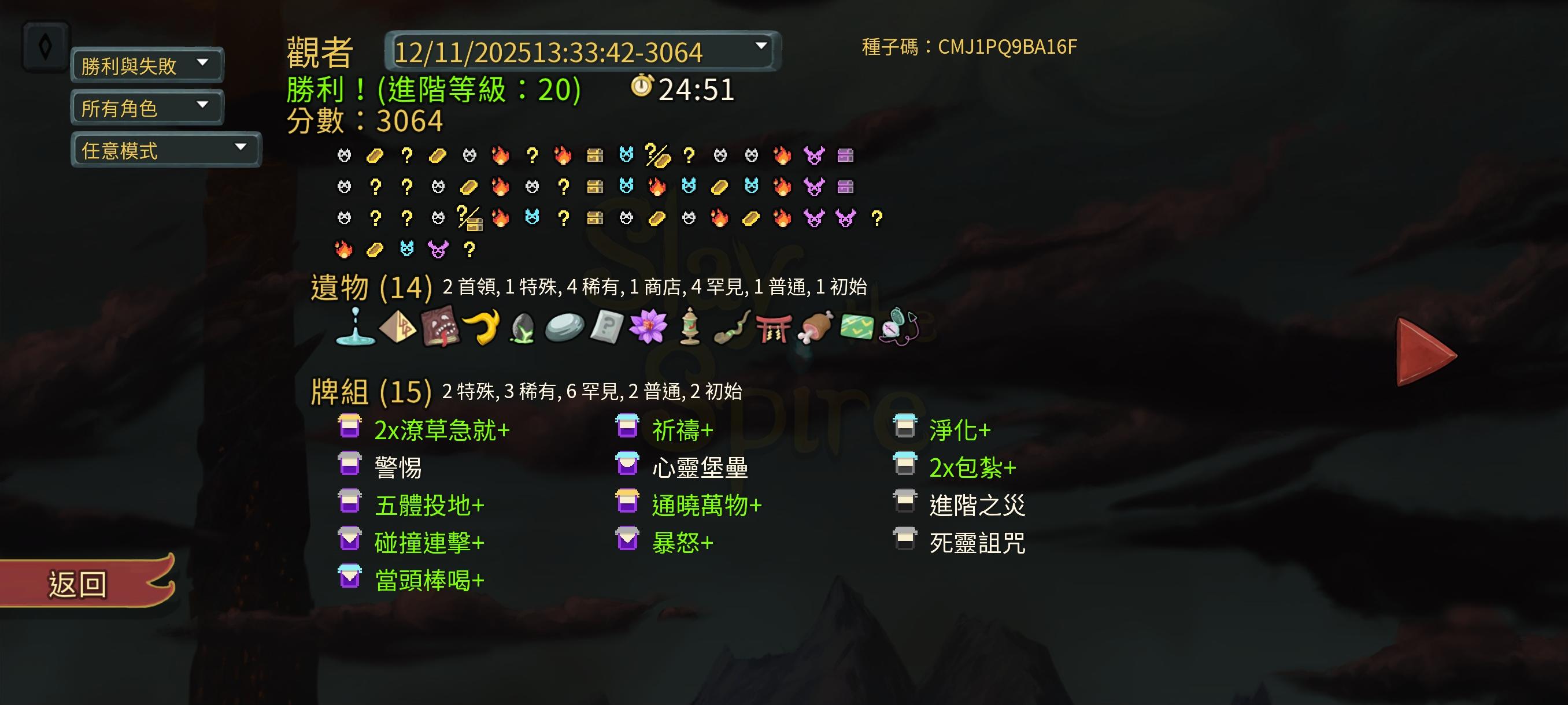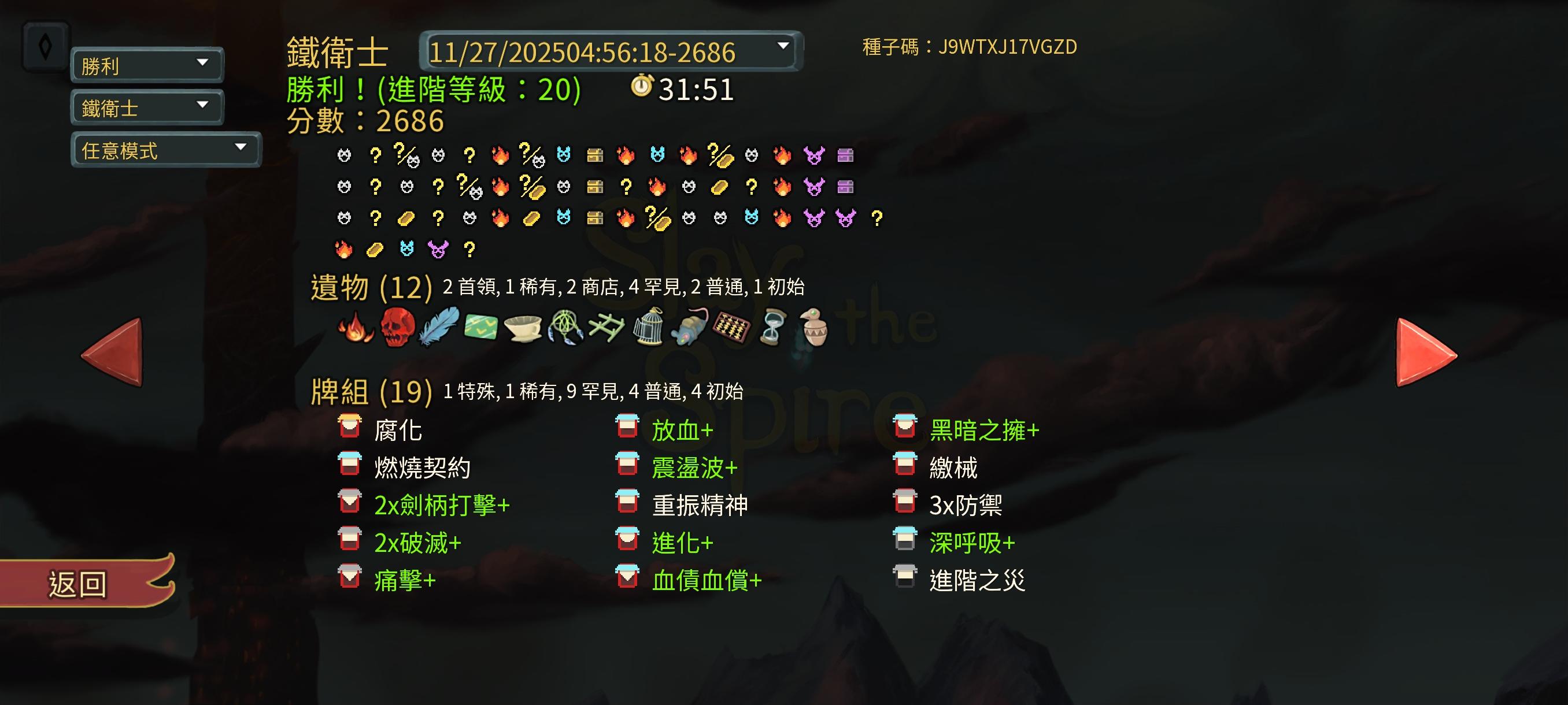5.极致的耐玩性。上面的四点都极大地增加了游戏的耐玩性。但还不够。最重要的是玩家的心态。“这把是运气不好罢了,再来!”“我要打连胜,再来!”……基于上面各点,玩家的心态不断发生着改变,一点一点地喜欢上《Slay the Spire》。同时在玩家一次次的游戏中,玩家的经验也在不断增加。“运气不够,经验来凑。”是大多数尖塔玩家最真实的一面,而不断增加的经验,又使玩家有更高难度的追求。使一个区区几百M的游戏,拥有巨大的黏着力。