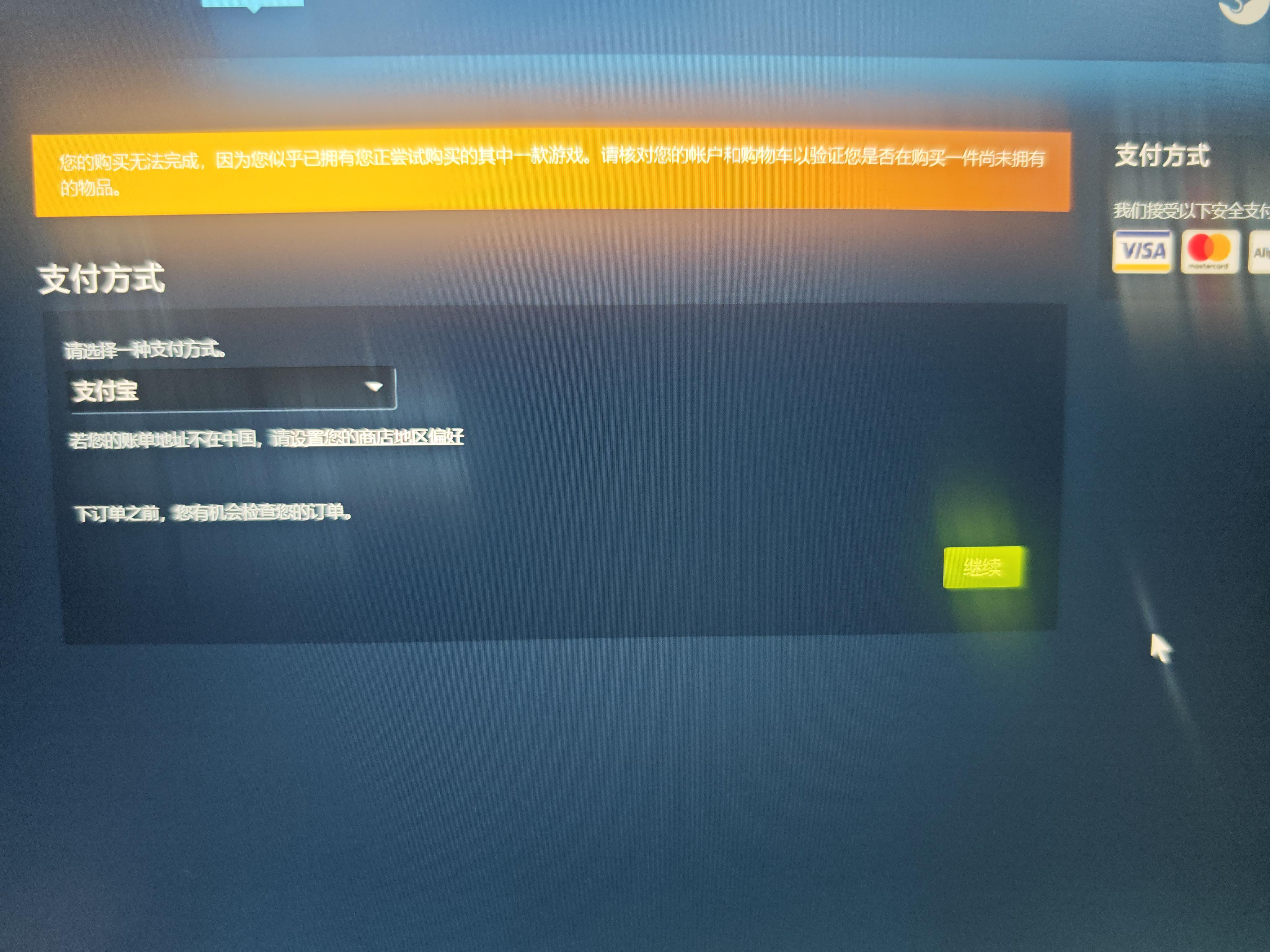 选择的steam直购方式,买完了在电脑登录steam,在游戏库里没有找到,在购物车里有一个,但是显示就不正常,也不能支付,这是怎么回事呢?