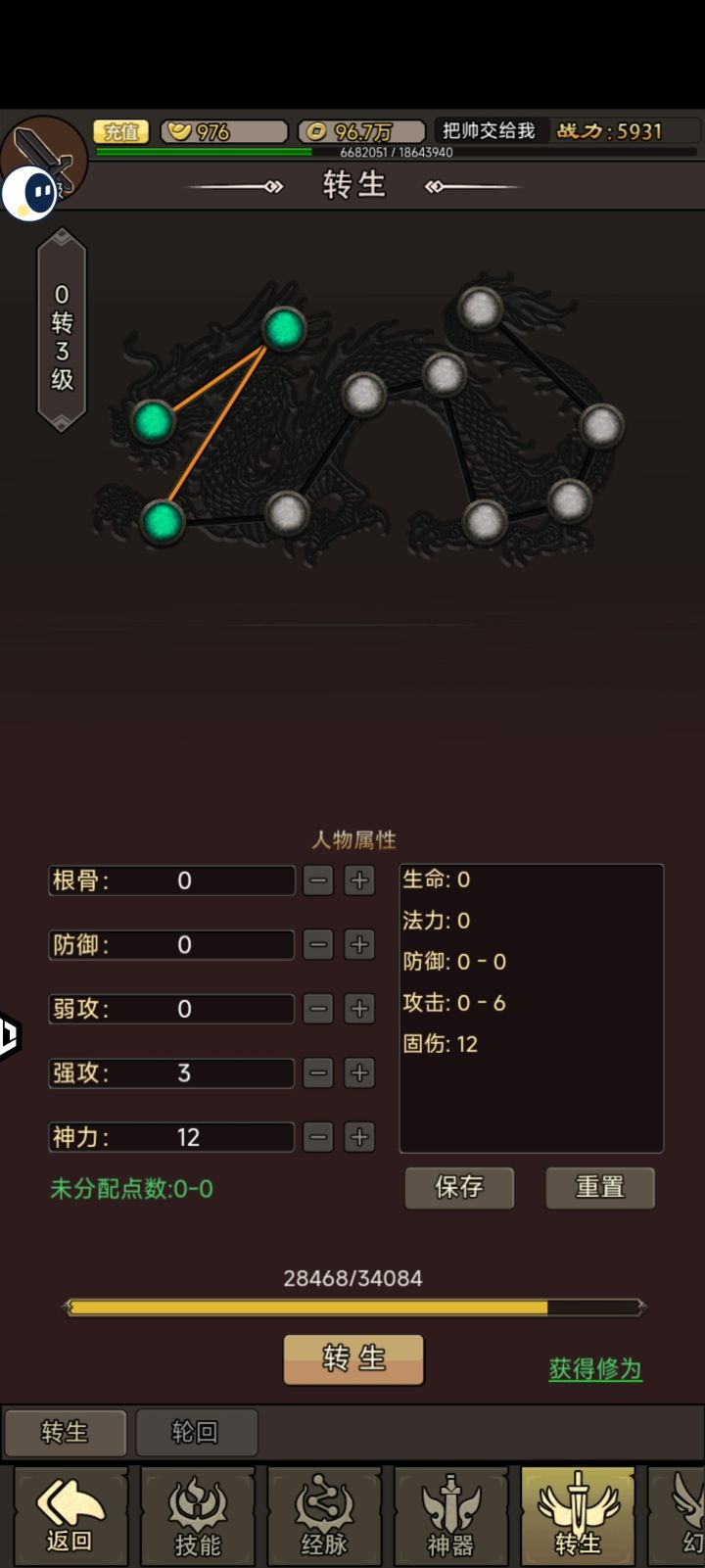 也玩了这游戏好几天了。这游戏是可以白嫖的!但是有条件的最好把几张卡开了,绝对好用!性价比很高!。新人上来跟着主线走即可,35级以下很好升级。就我现在知道的而言,最好是一直在线,离线的经验和其他东西会少很多。然后转生给的属性点最好点防御,如果你是氪佬你当我没说无脑选攻击,总共有三个攻击,弱攻。强攻和神力,我个人理解是强攻或者神力加点。然后装备的话前期一定要固防属性,不然顶不住怪,后面慢慢的洗全技能➕