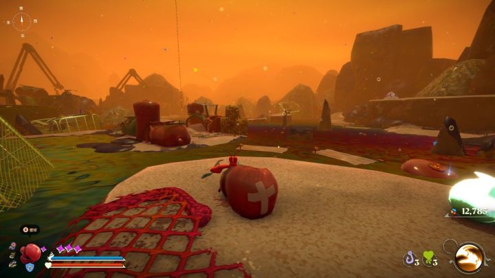 再说到游戏里,游戏中的钱叫“微塑料”;我们通过花费微塑料在月螺壳提升我们自己的能力数值时叫“净化身上的微塑料”;我们死亡后会掉落物品,当我们回死亡地点拾取时,叫“回收垃圾”