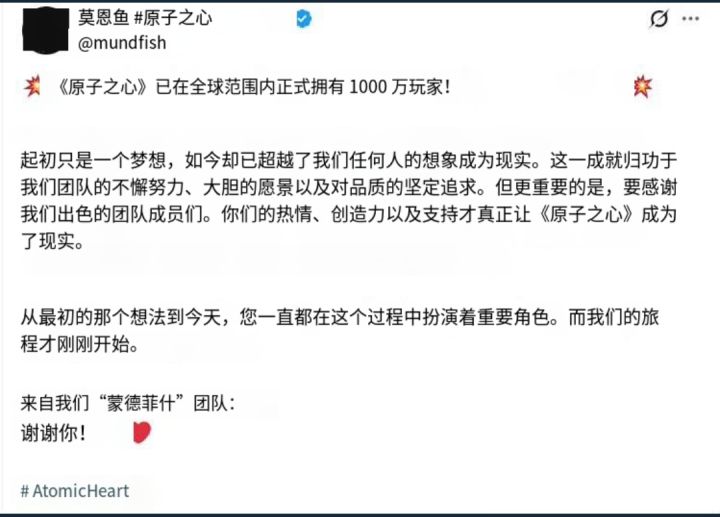原子之心玩家破一千万❗