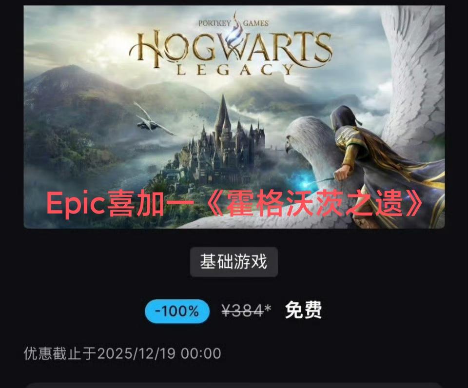 Epic商店神秘游戏公布!《霍格沃茨之遗》现已开启限时免费领取活动,该优惠将持续至12月18日截止。此次促销也标志着Epic游戏商店假日特卖活动的启动。本次特卖将持续至1月8日,多款游戏提供最高75%的折扣优惠。 #主机单机 #霍格沃兹之遗
