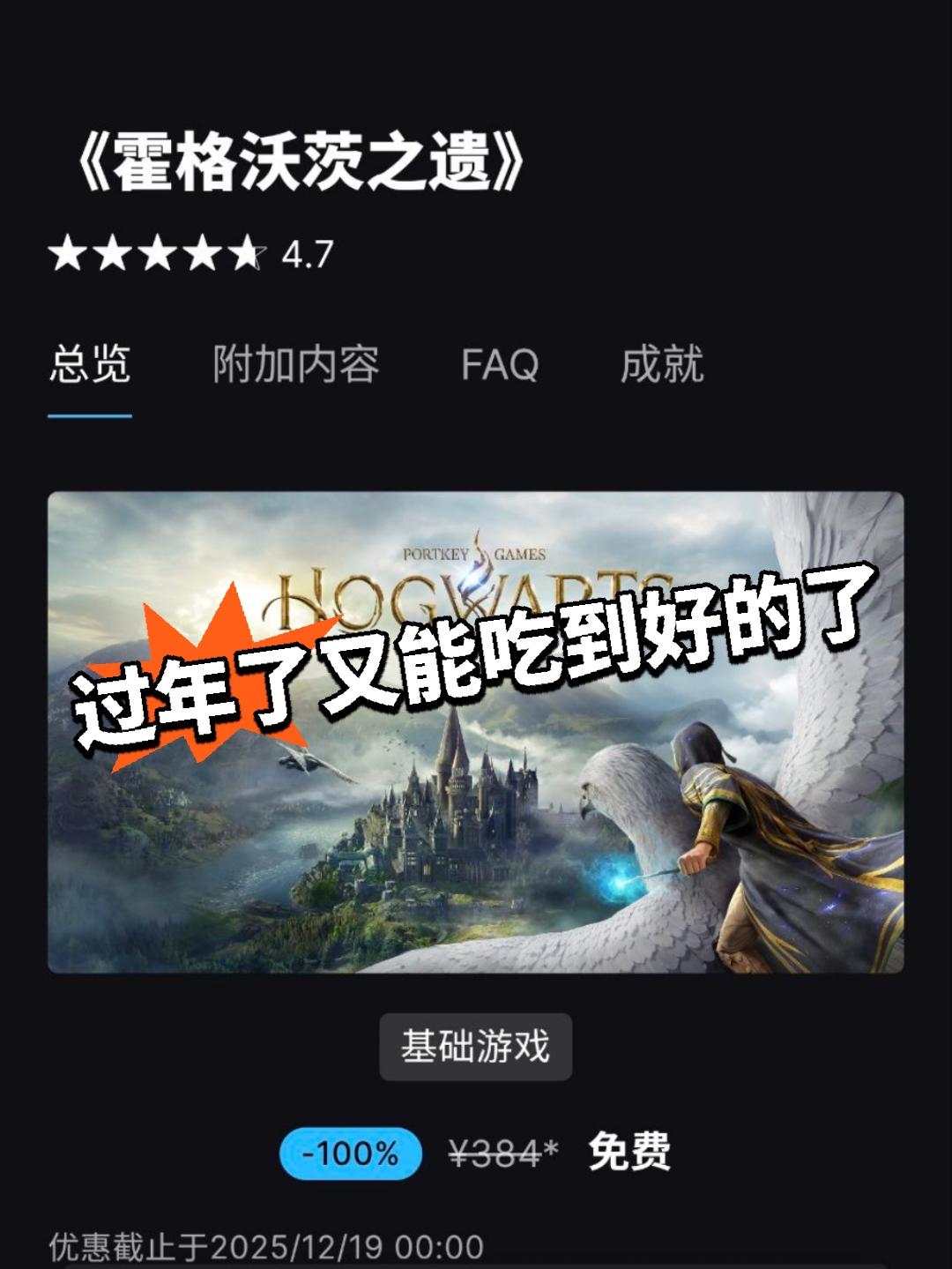 游戏隔壁免费领。过年了又能吃到好的了,美滋滋。#主机单机 #游戏资讯 #霍格沃茨之遗