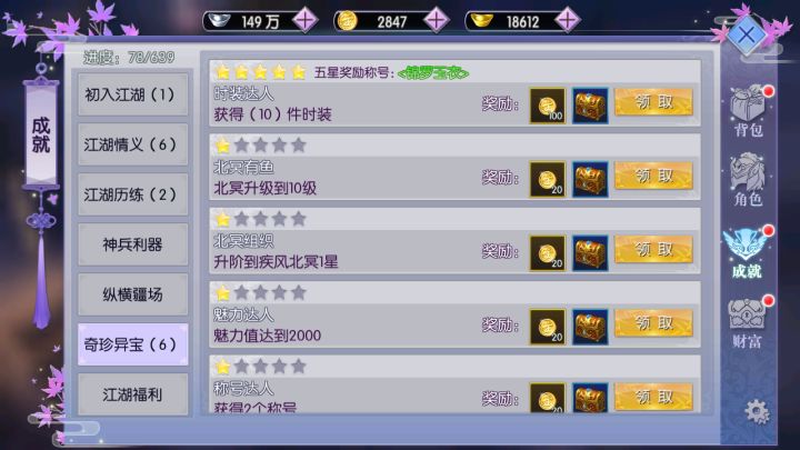 常言道没钱寸步难行,少侠闯荡江湖,身无分文可混不开。在《御剑连城》中,主要的流通货币有三种:银两、金币以及元宝。无论是召回离线经验还是商城购买都需要大量的金币支持。对于0氪党和微氪党来说,金币更是可以拉近与土豪党的战力差距,今天玉娘就来向大家说说获取金币的几种主要途径。江湖成就在成就系统中,总共包含7个大类639个小类成就奖励,每达成一项成就就可以获得对应的金币奖励,比如出入江湖类,首次体验游