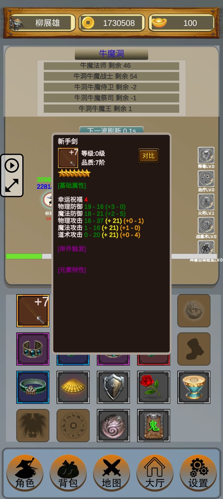 初始有新手装备属性还是不错的,7阶可以用到屠龙级别的武器。
