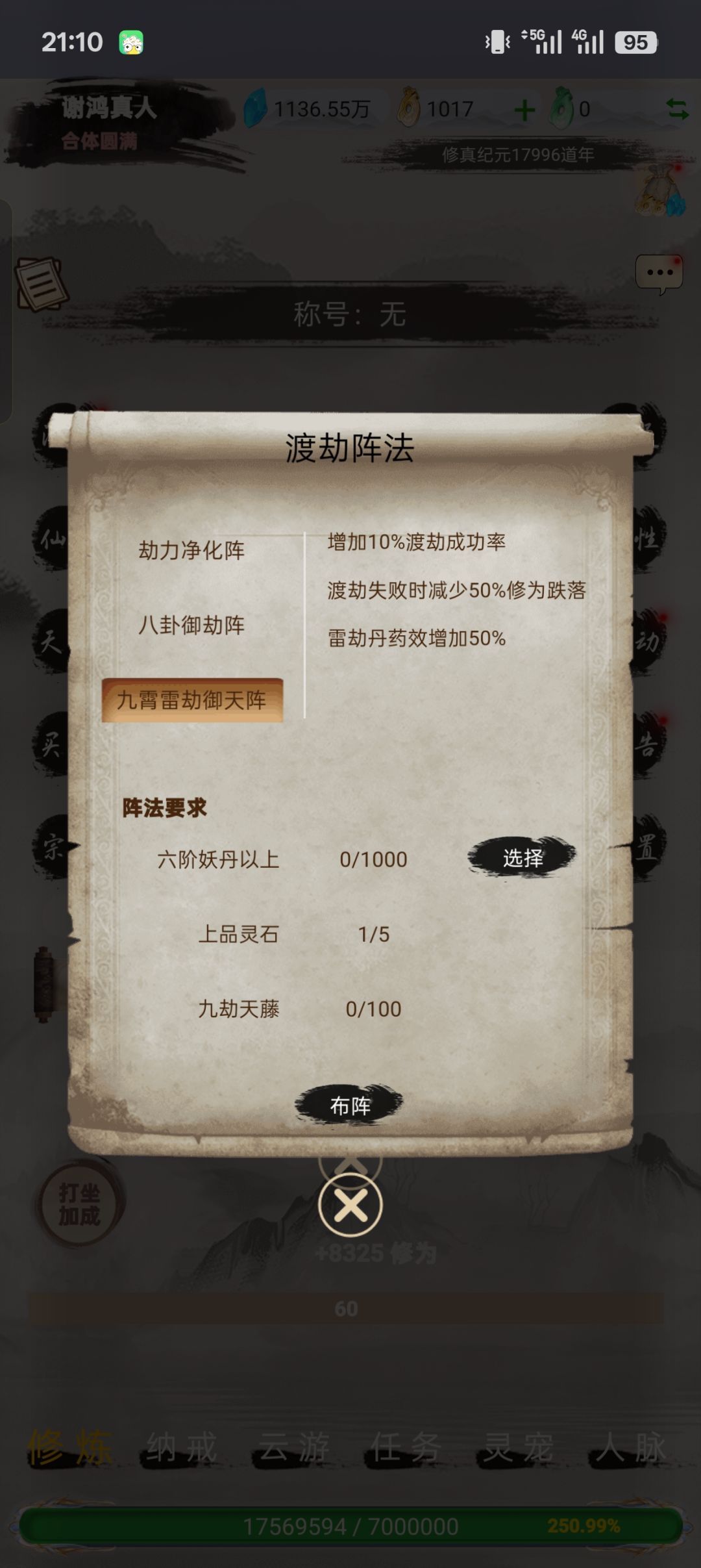 一、洞府,游戏的核心资源点之一,照顾好洞府能节约不少资源 1.灵脉:核心中的核心,升级增加每级10%打坐效率,灵石获取,仙玉获取,神级后还能获得晶玉兑换额度(交易所货币,正常只能氪金获取兑换额度),建议能拉多高拉多高,新手兑换码的仙玉千万别乱花,开灵脉 2.药田和炼丹:丹药的主要白嫖供给地,药田前6块必开,有仙玉开满收益也可以,增益丹一般练归元或者造化丹,野外丹靠仙盟兑换(因为打坐礼包里是一个打坐