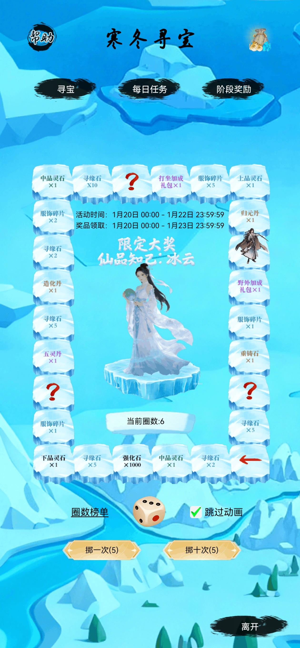 各位道友:《仙境苍穹》1月2日12:00开启新服“灵渊仙阁”。又有道友在此开启新的修仙旅程,新服开启之际,同步上线了“寒冬寻宝”活动,先开启“寒冬寻宝”的晒图活动活动时间:2026/1/20-2026/1/24活动奖励:仙玉x1888、打坐加成礼包x2、野外加成礼包x2【参与方式】本次活动需以图文形式在《仙境苍穹》论坛发布新帖,发帖晒出游戏内“寒冬寻宝”活动相关元素的游戏截图,即可领取奖
