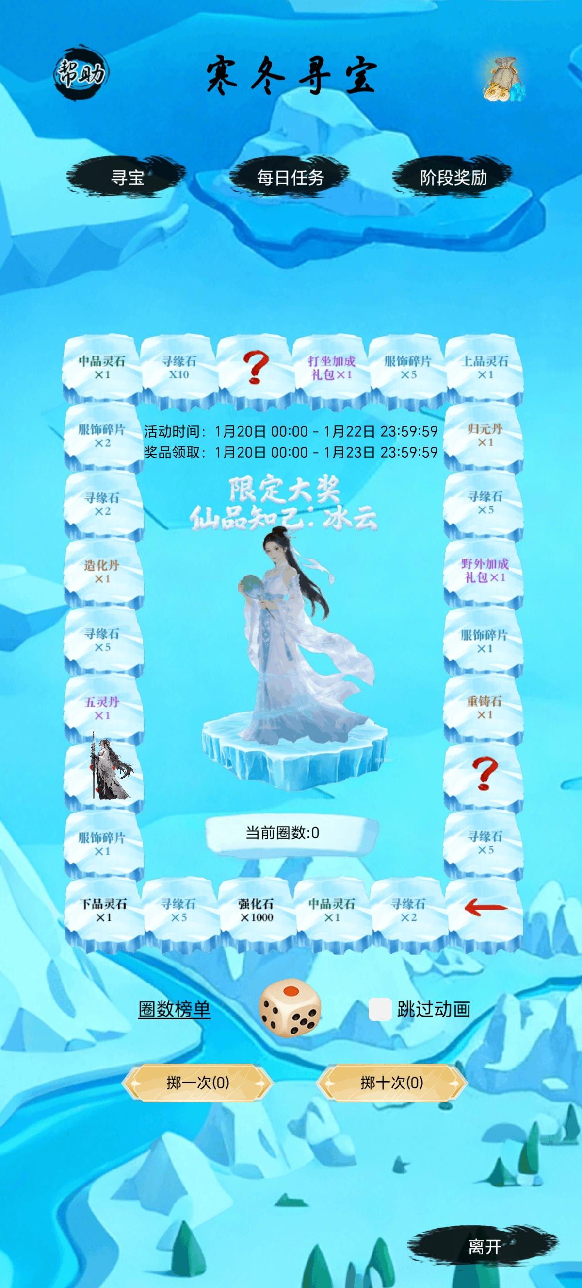 各位道友:《仙境苍穹》1月2日12:00开启新服“灵渊仙阁”。又有道友在此开启新的修仙旅程,新服开启之际,同步上线了“寒冬寻宝”活动,先开启“寒冬寻宝”的晒图活动活动时间:2026/1/20-2026/1/24活动奖励:仙玉x1888、打坐加成礼包x2、野外加成礼包x2【参与方式】本次活动需以图文形式在《仙境苍穹》论坛发布新帖,发帖晒出游戏内“寒冬寻宝”活动相关元素的游戏截图,即可领取奖