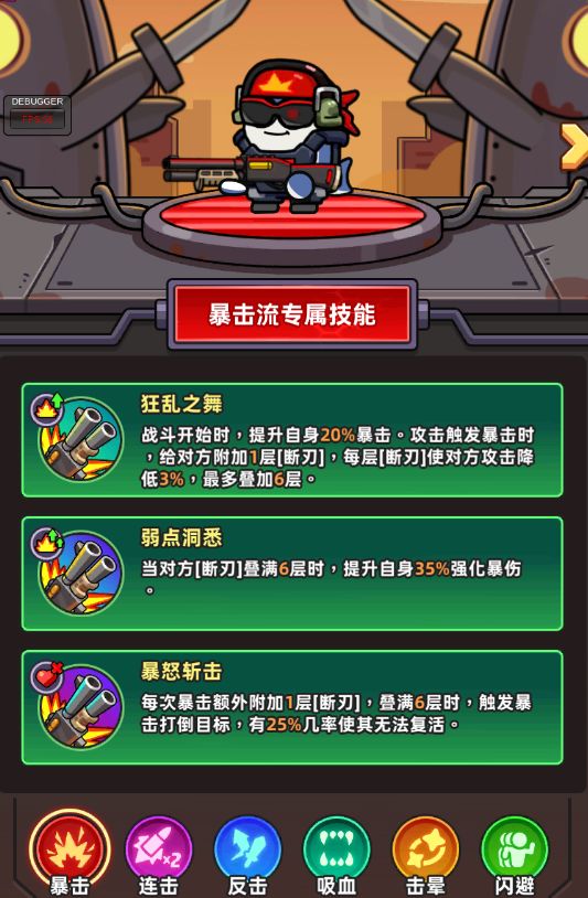 一、暴击流技能1.狂乱之舞战斗开始时,提升自身20%暴击。攻击触发暴击时。给对方附加1层【断刃】。每层【断刃】使对方攻击降低3%。最多叠加6层。2.弱点洞悉当对方【断刃】叠满6层时,提升自身35%强化暴伤3.暴怒斩击每次暴击额外附加1层【断刃】,叠满6层时,触发暴击打倒目标。有25%几率使其无法复活。4.暴击简介暴击流的核心在于通过提高暴击概率和暴击伤害,让角色在攻击时有更高的几率