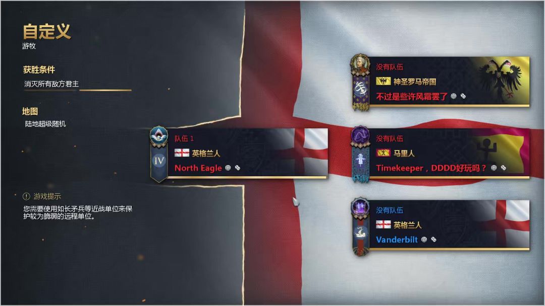 帝国时代4,游牧ffa吃鸡,英格兰,技巧经验技术分享,上3后马上看一下他们距离,判断判断是直帝跑马还是直接出武士