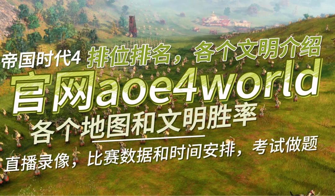 帝国时代4,官网aoe4world,排位排名,各个文明介绍,各个地图和文明胜率,直播录像,比赛数据和时间安排,考试做题等