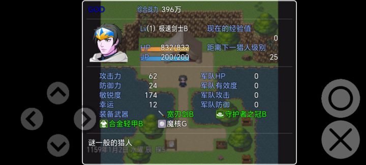 前面玩了下简单,想困难试试,结果发现了个400多血100多攻接近400敏捷的数值,就开局了,进去还以为看错了,结果396万战斗力?