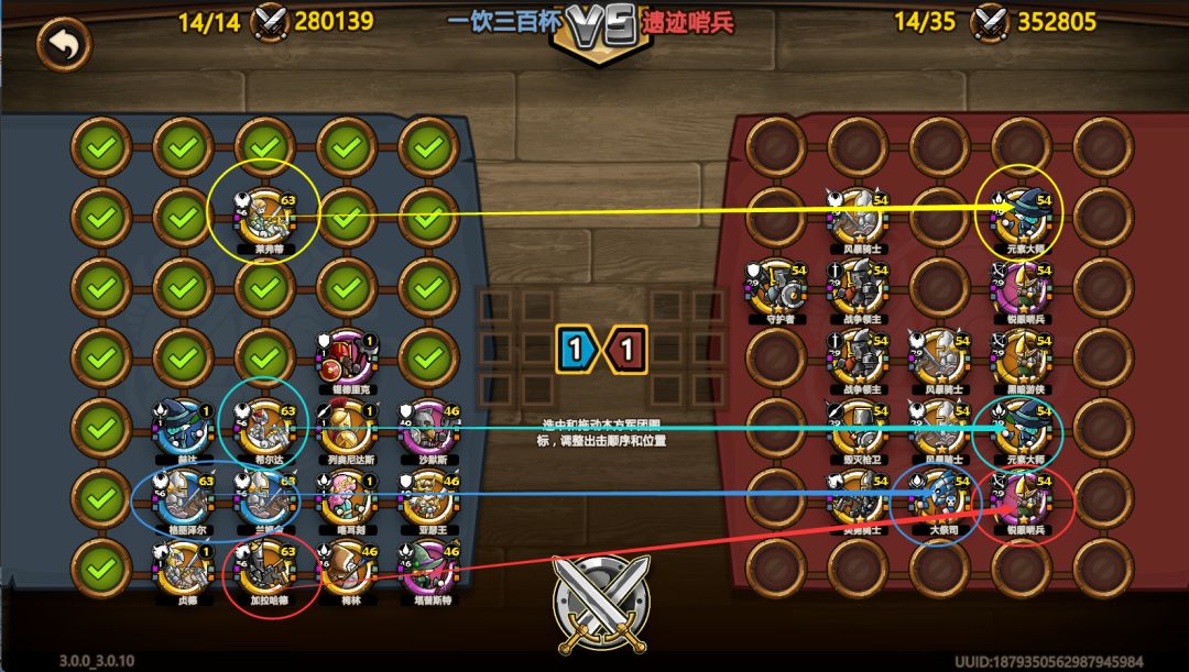 布阵如图所示 1.boss会在第30秒的时候释放一个秒杀10个近战方阵的范围aoe(无视无敌),所以核心输出建议放到二队。 2.法师技能分支全部选择术士,兵种分支选择下,圣物里面有带部队攻击力的可以上场。 3.一队可以前置一个没用的飞马,快速骗出第一次冲锋,中间放亚瑟王,为第30秒第二次大冲锋做准备。 4.配置的话,赫尔墨斯可以换成奶爸,海尔达姆换成任意高星抗伤盾兵,驱散牧和骷髅法是一队核心。 5