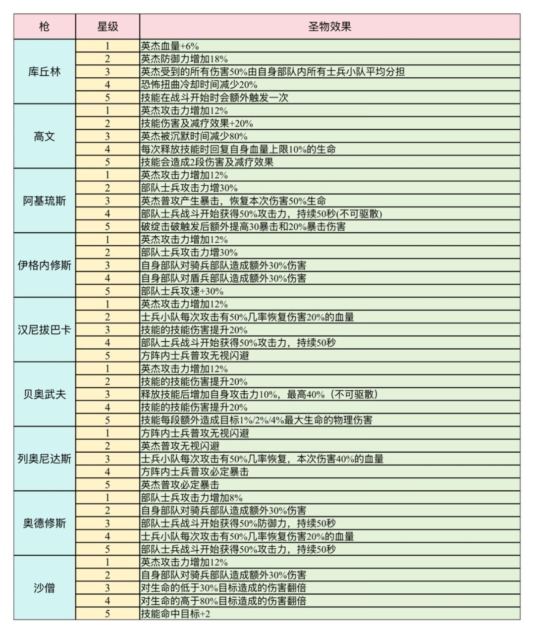 (全体英杰圣物攻略) 为2025.2.25日更新前,全部英杰圣物技能描述。大家不清楚圣物技能的可以保存下做一个研究,游戏内的就不用来回翻。 做一个参考,提前规划圣物技能使用,有错误的地方还请评论区指出我随时修改,因为无法发文件。日后会根据英杰的更新以及圣物改动,随时更新表格(所有英杰技能表格也做好了,完善后和大家一起分享) 祝大家玩得开心🥳 #小小军团重生攻略 #小小军团 [表情_开心][表情_开心]