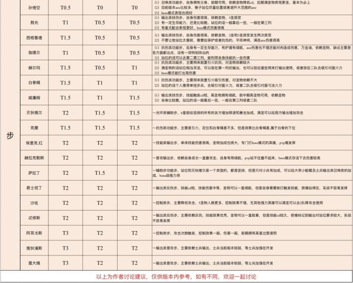 一、概要攻略为简单版,没有更深层次的讲解具体的玩法,以后会做进阶版。强度为我们个人讨论意见,仅供大家简单的参考,有不同的意见欢迎一起讨论二、依据@沐风和@墨雪历经14天, 经过大量的实战测试和实战经验互相讨论而来的意见,供大家参考三、总结 本攻略作为五一版本前的攻略,英杰变化会随着版本变化,制作不易,希望大家给我个墨雪点个赞谢谢