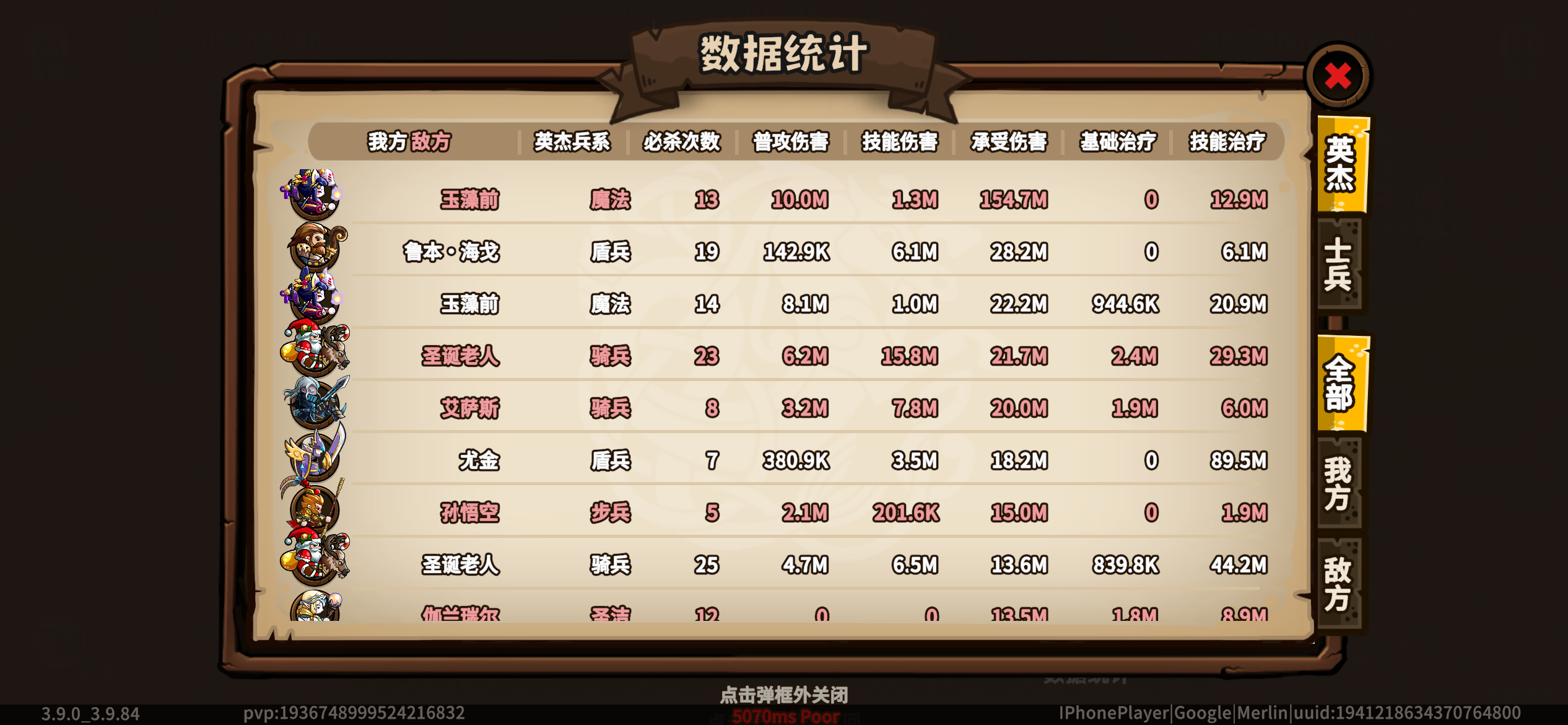 原来是对面玉藻前帮了大忙。对上玉藻前不知道触发了什么bug,对面玉藻前抗伤也上天了(一般情况下就是15-25M)我破伦:听我说谢谢你