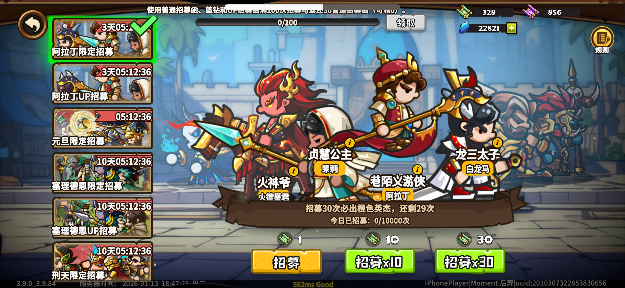 all in 拿破仑这玩意儿还没上手,看介绍很强啦配合李舜臣可以帮助前期快速解决飞兵的方案(又想起去年建号被几个飞兵切菜的恐惧)去年没有刷开小号,傻乎乎乱抽就开始玩了,前期真的蛮痛苦的新区开号的好处其他无所谓,主要诸神有一点点游戏体验吧,号养好了可以和其他玩家赛马……紫抽钻石别乱花了最近版本是这样的,大陆池和普池坑钱已经满足不了策划了,现在每个月两个节日池,而且都是必抽的,所有钻石紫