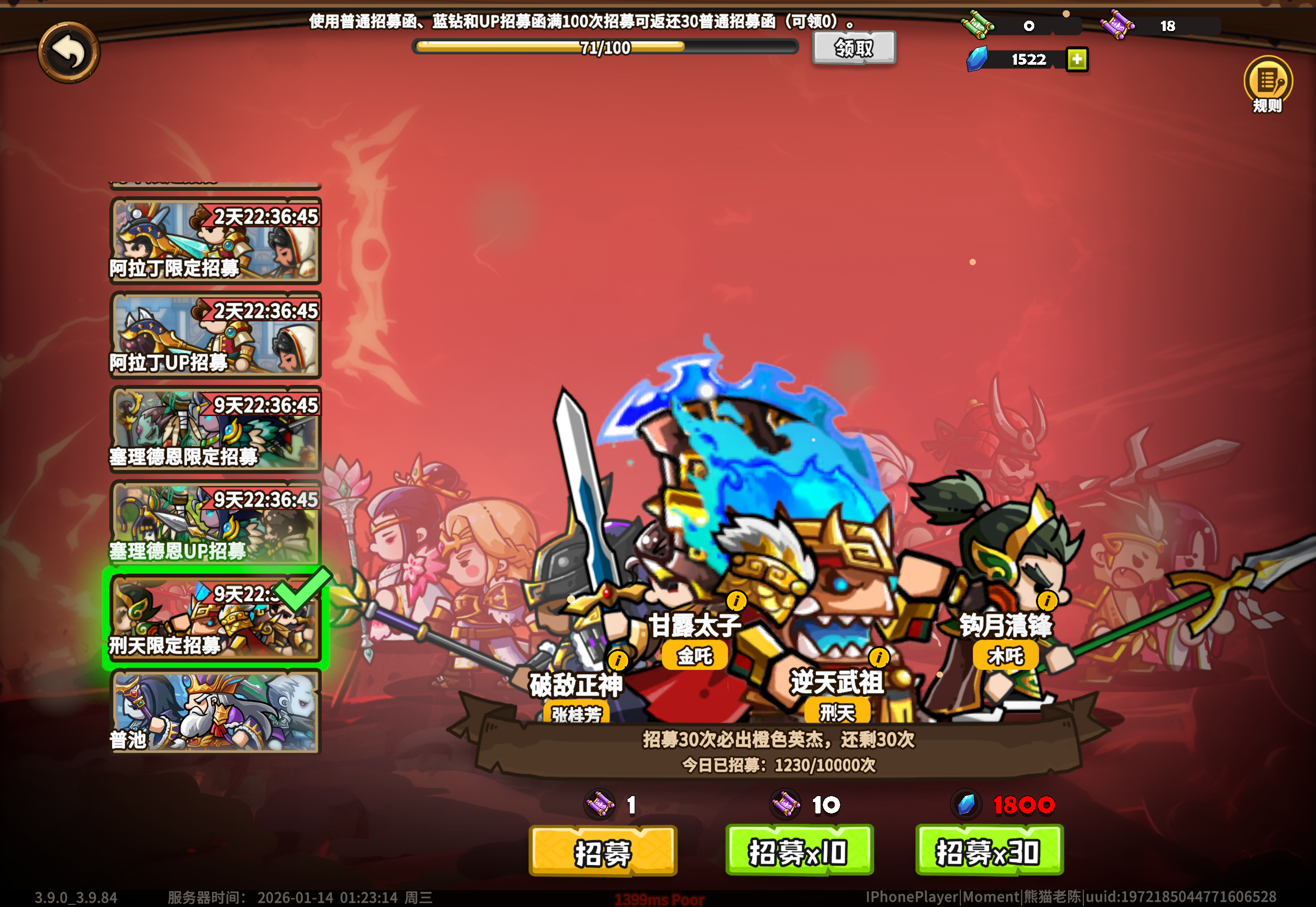 all in 拿破仑这玩意儿还没上手,看介绍很强啦配合李舜臣可以帮助前期快速解决飞兵的方案(又想起去年建号被几个飞兵切菜的恐惧)去年没有刷开小号,傻乎乎乱抽就开始玩了,前期真的蛮痛苦的新区开号的好处其他无所谓,主要诸神有一点点游戏体验吧,号养好了可以和其他玩家赛马……紫抽钻石别乱花了最近版本是这样的,大陆池和普池坑钱已经满足不了策划了,现在每个月两个节日池,而且都是必抽的,所有钻石紫